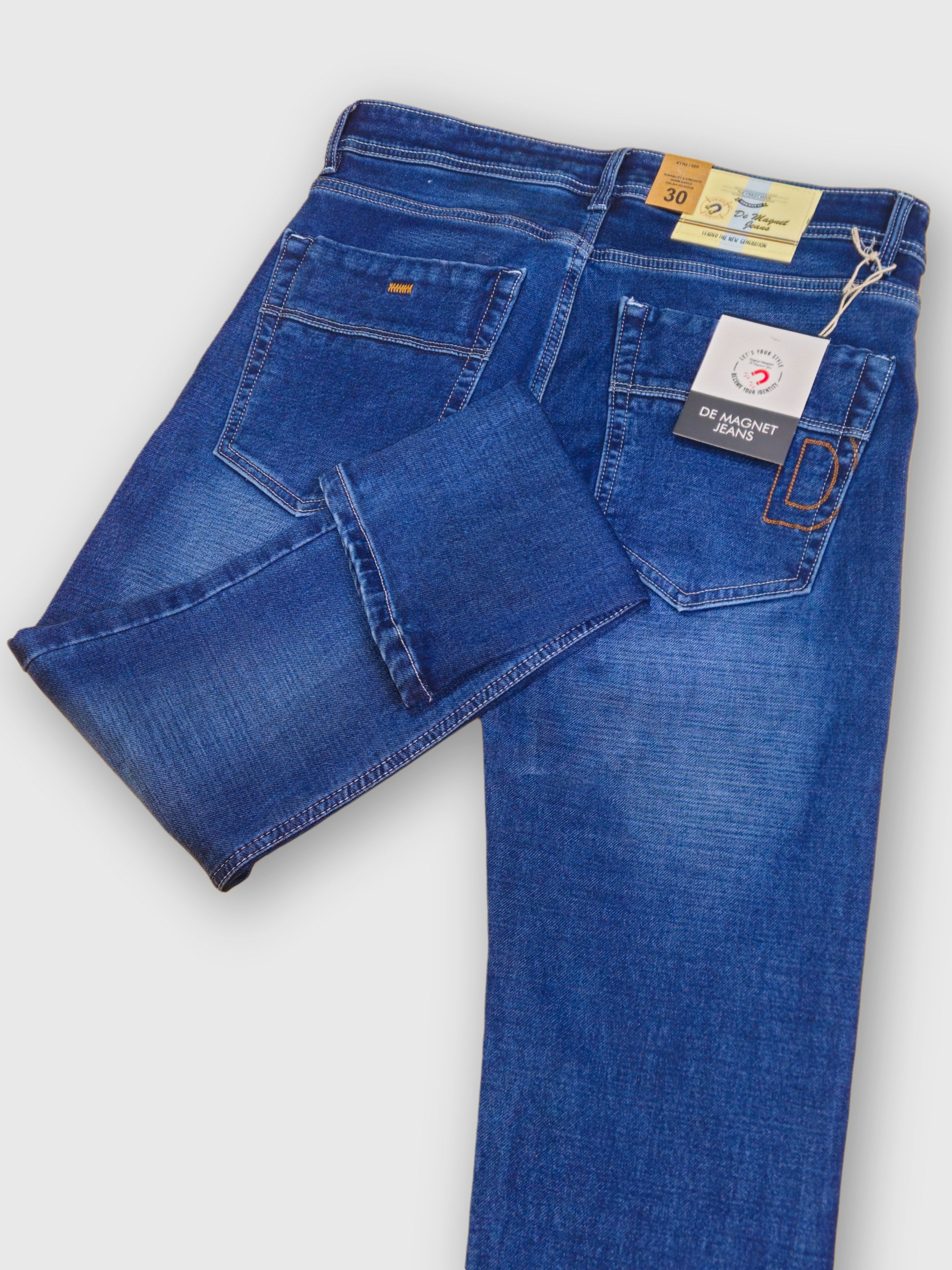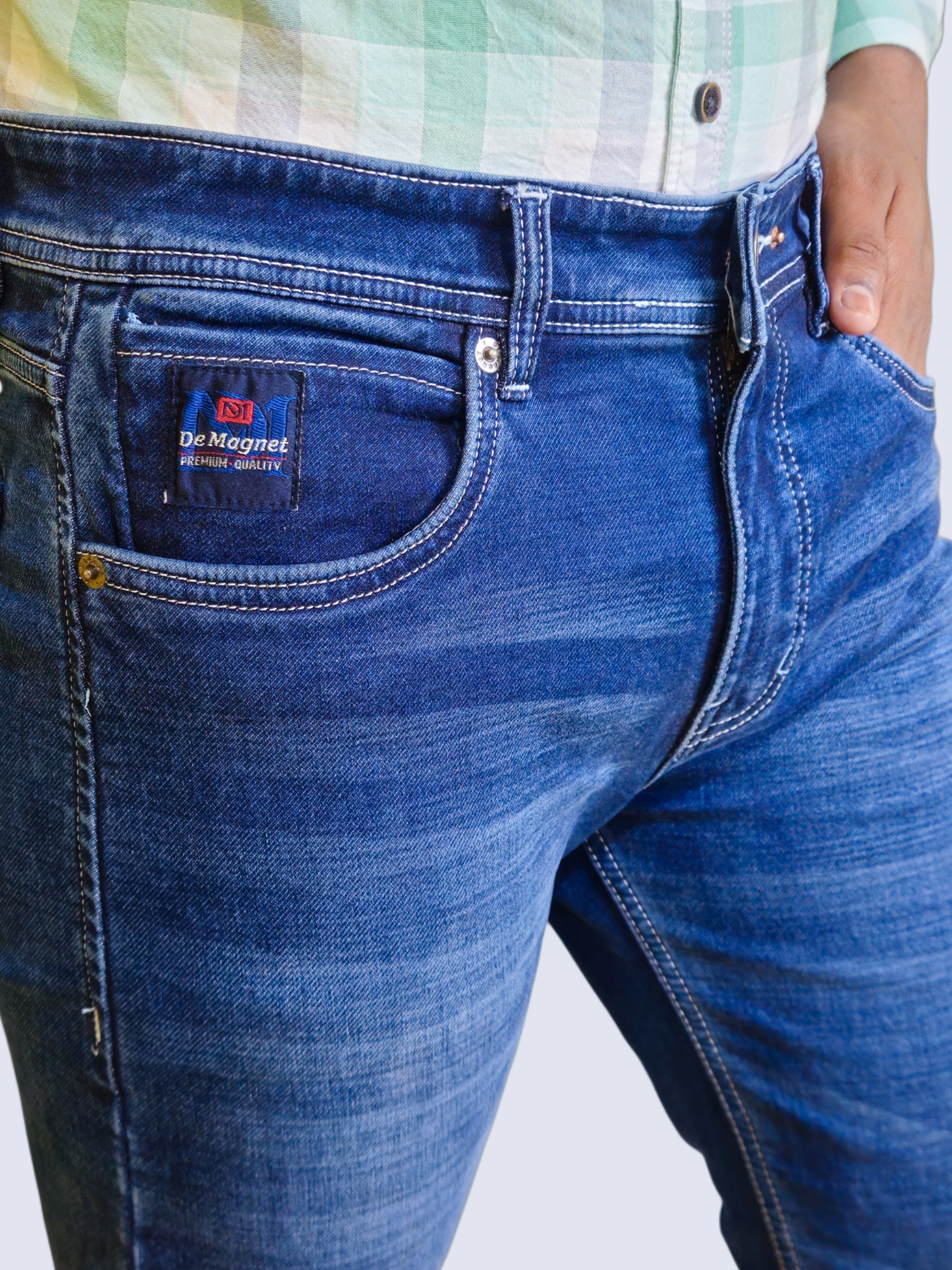 Upgrade your everyday style with these slim fit stretch denim jeans for men, designed for both comfort and durability. Featuring a rich classic blue wash with subtle fade and whisker detailing, these jeans deliver a modern yet timeless look. The stretchable fabric ensures freedom of movement, making them ideal for all-day wear. Finished with a classic five-pocket design, contrast stitching, and a button-and-zip closure, these jeans pair effortlessly with your favorite shirts and sneakers. Perfect for casual outings or smart-casual settings.