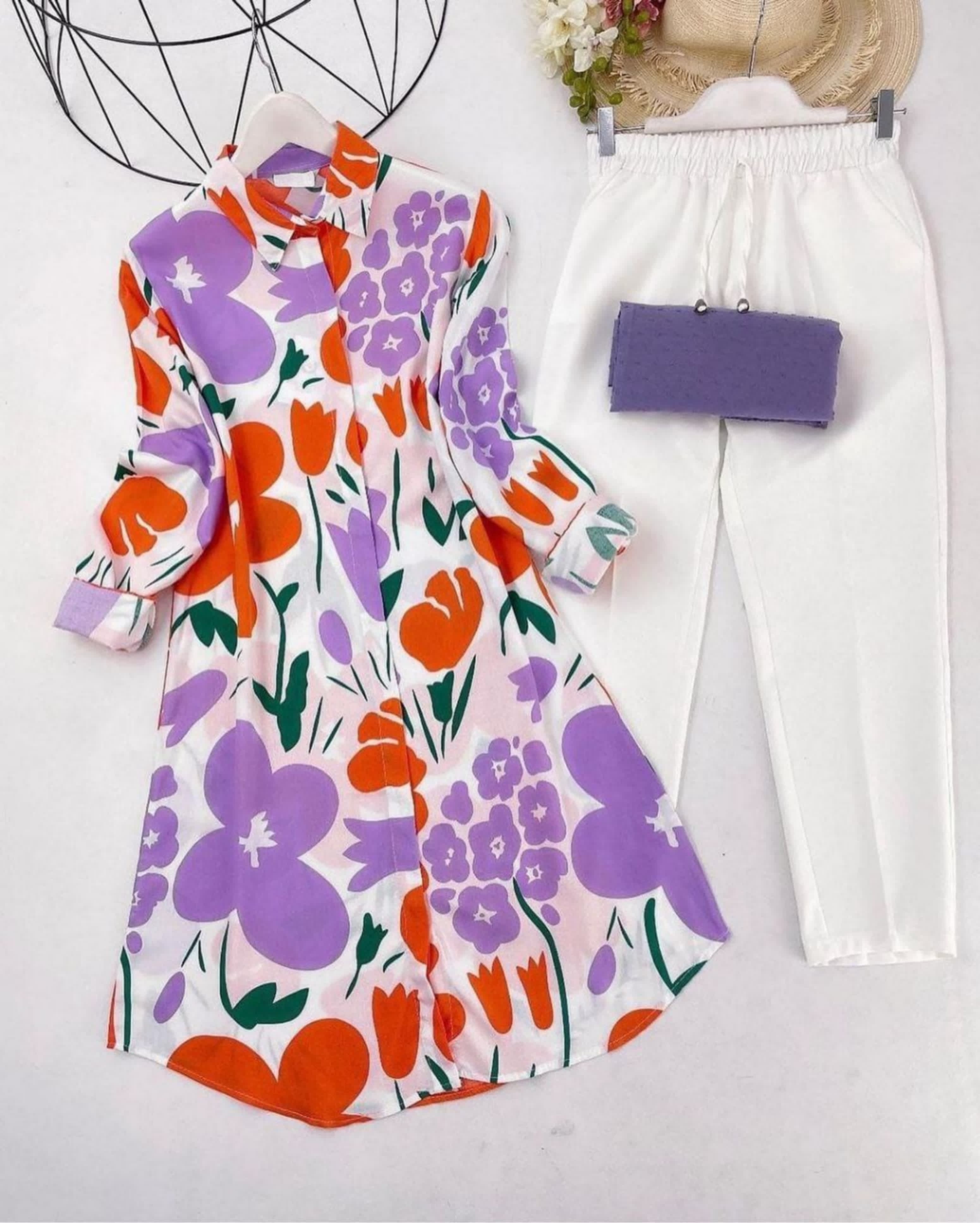 Step into vibrant fashion with this bold floral printed kurti in shades of purple, red, and green. Crafted from soft rayon fabric, it's paired with a comfy white stretchable plazzo, perfect for casual outings, office wear, or festive brunches. Its eye-catching design is sure to turn heads!