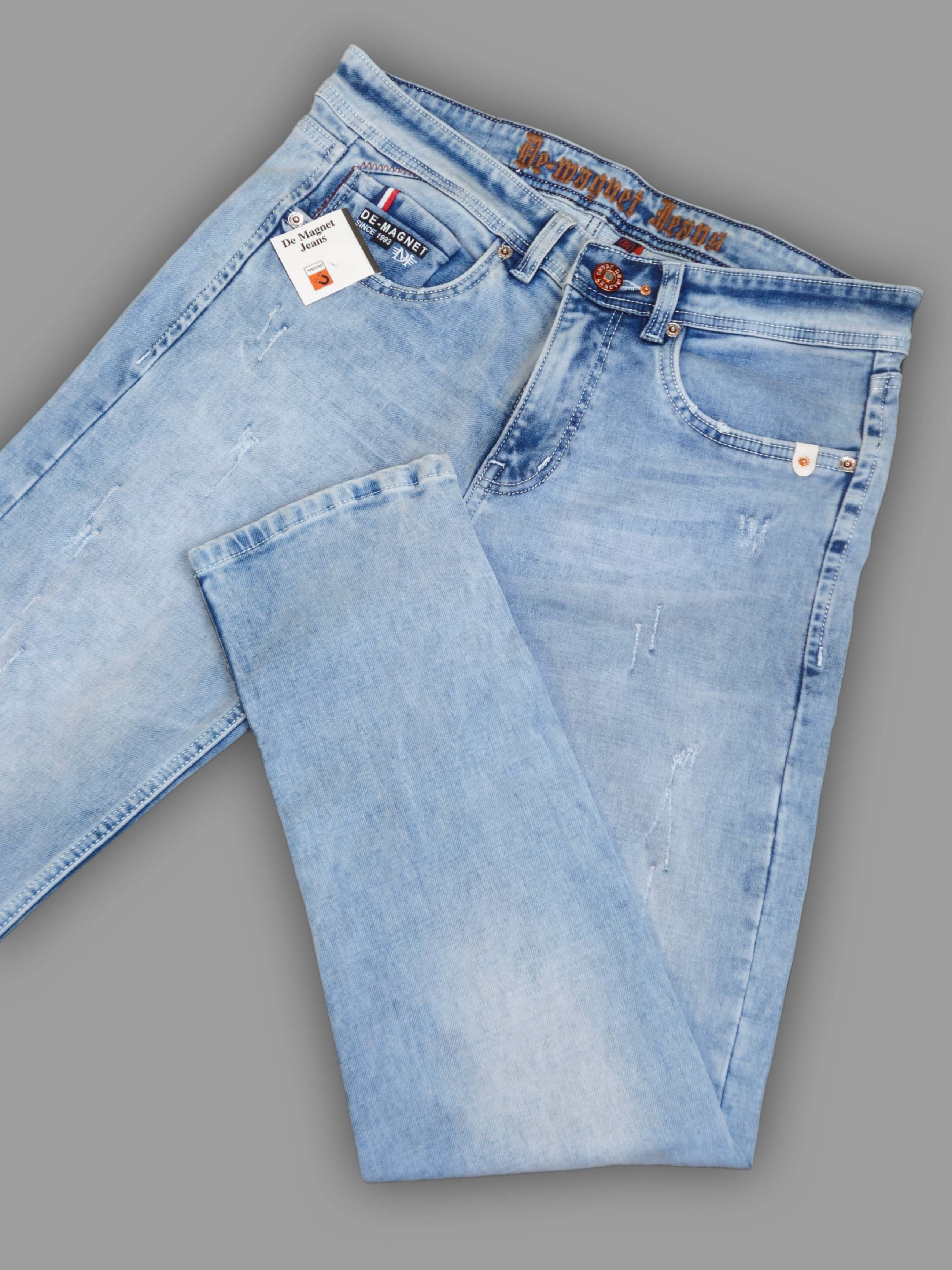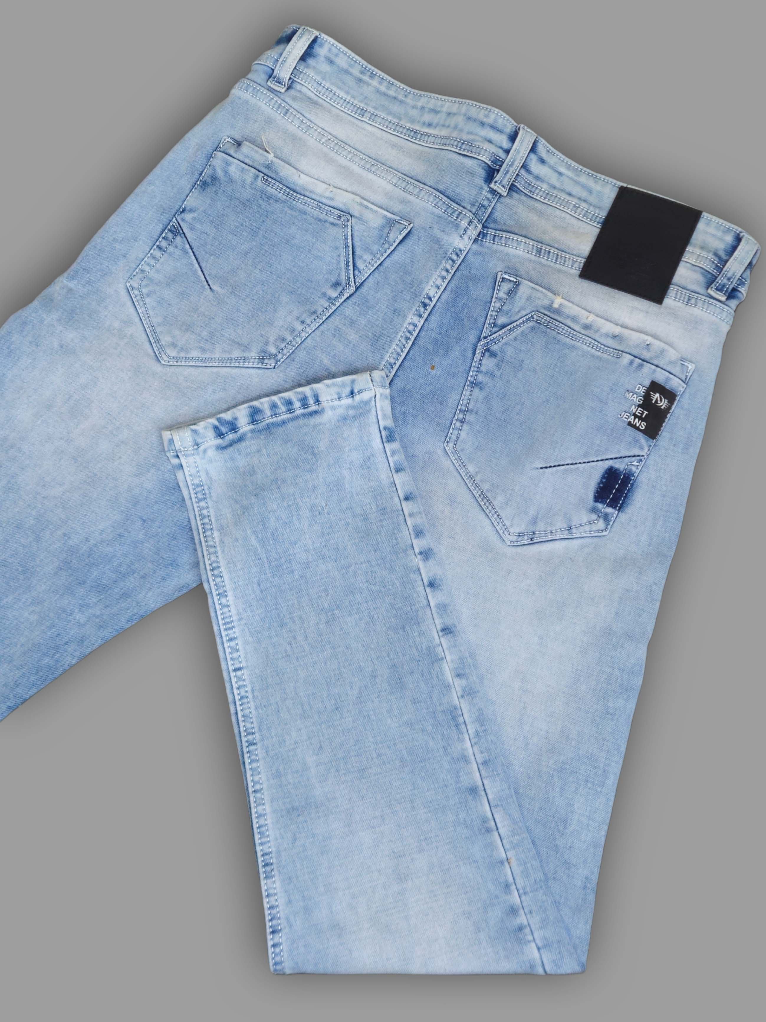 Keep it cool and casual with these light blue jeans featuring subtle scratch-wash detailing. The slim fit design and soft stretchable fabric ensure maximum comfort while maintaining a stylish, laid-back vibe. A perfect pick for daily wear or weekend outings.