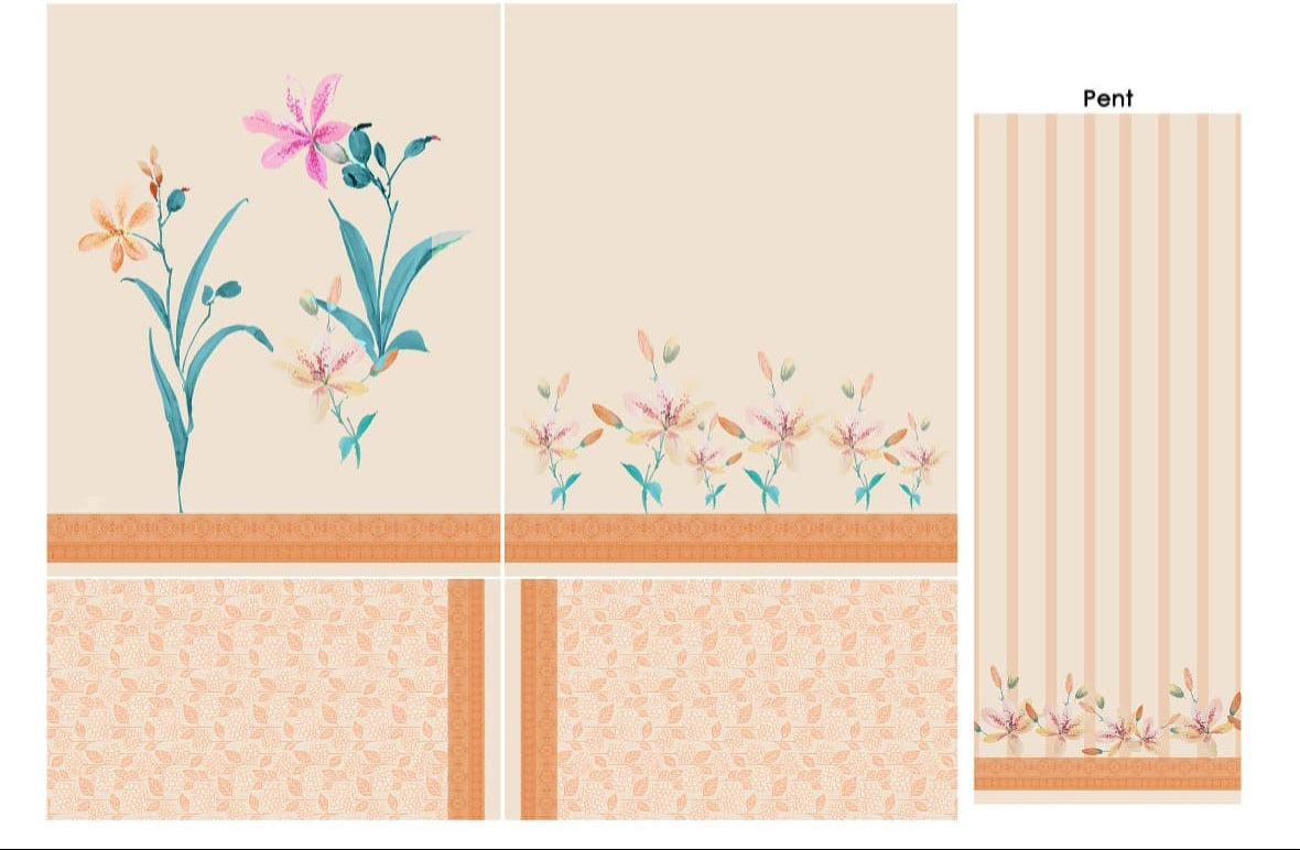 Elevate your everyday style with this refreshing pastel-toned co-ord set featuring a nature-inspired floral design. The shirt is adorned with large, painterly lilies in vibrant pinks and corals with teal foliage, paired with softly printed sleeves and a delicate orange border. The matching pants feature vertical stripes and a floral-printed hem, creating a calm and elegant silhouette that blends comfort with contemporary charm. Ideal for casual daywear or semi-formal brunches.