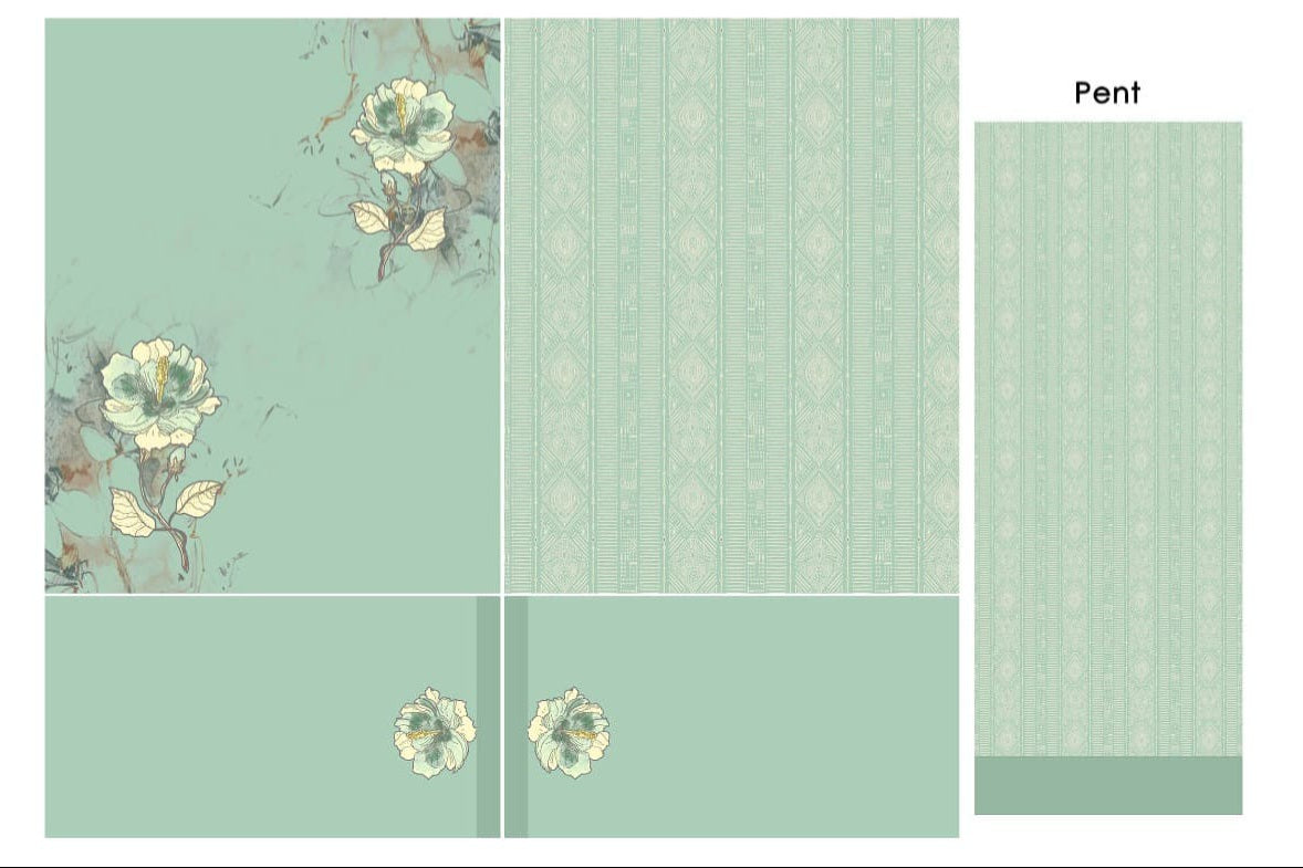 Refresh your wardrobe with the calming beauty of this pastel green floral co-ord set. The shirt showcases hand-painted style floral prints in soft green and beige tones, tastefully placed on the front and sleeves. Paired with relaxed-fit trousers featuring a delicate geometric self-print and solid green borders, this outfit is perfect for effortless everyday elegance. A balanced fusion of nature-inspired grace and modern tailoring.