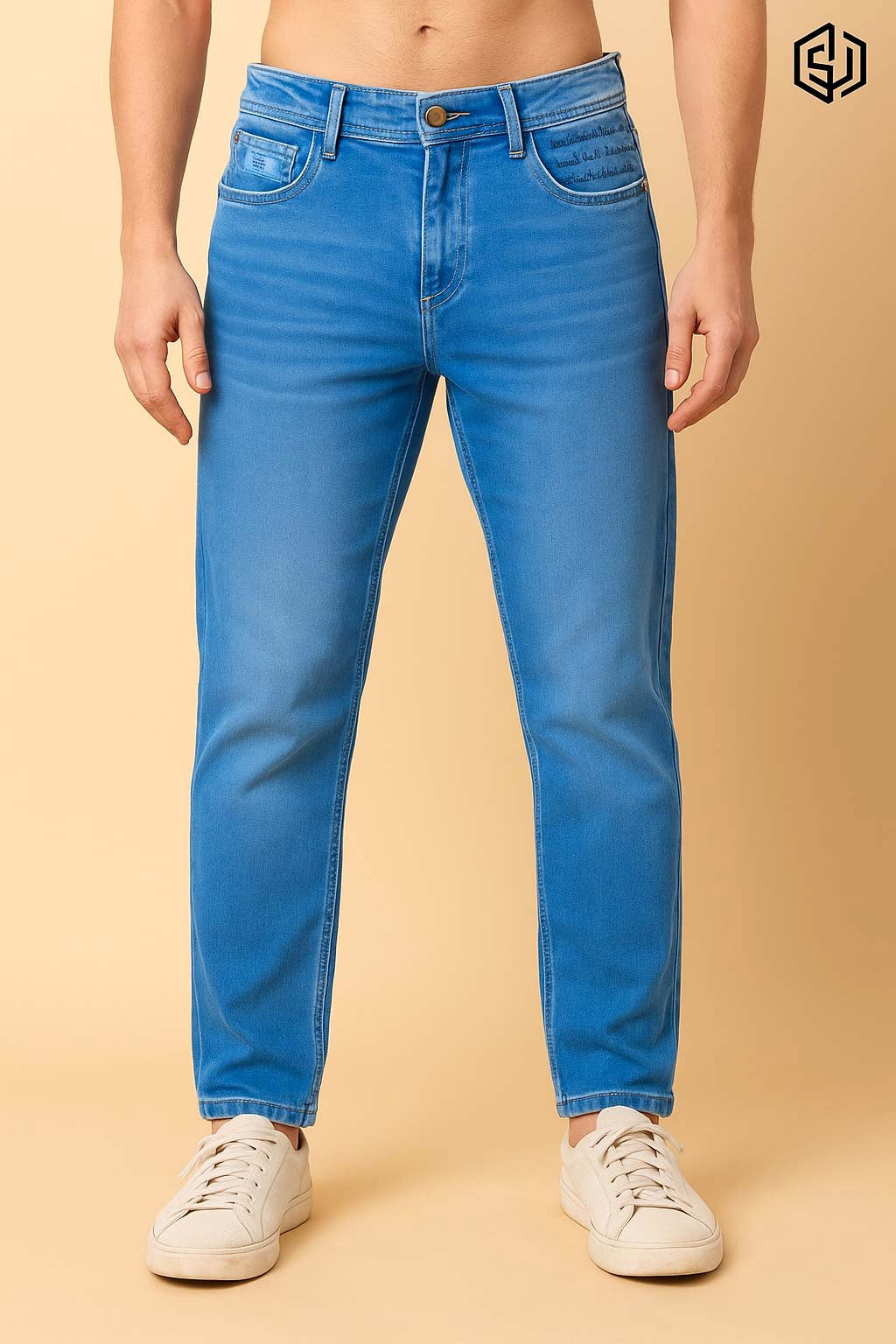Upgrade your denim collection with these trendy sky blue slim fit jeans, perfect for everyday wear. Designed with a modern washed finish, folded hems, and subtle whisker patterns, these jeans offer both comfort and urban style. Pair them with a white tee or casual shirt for a fresh, effortless look.
