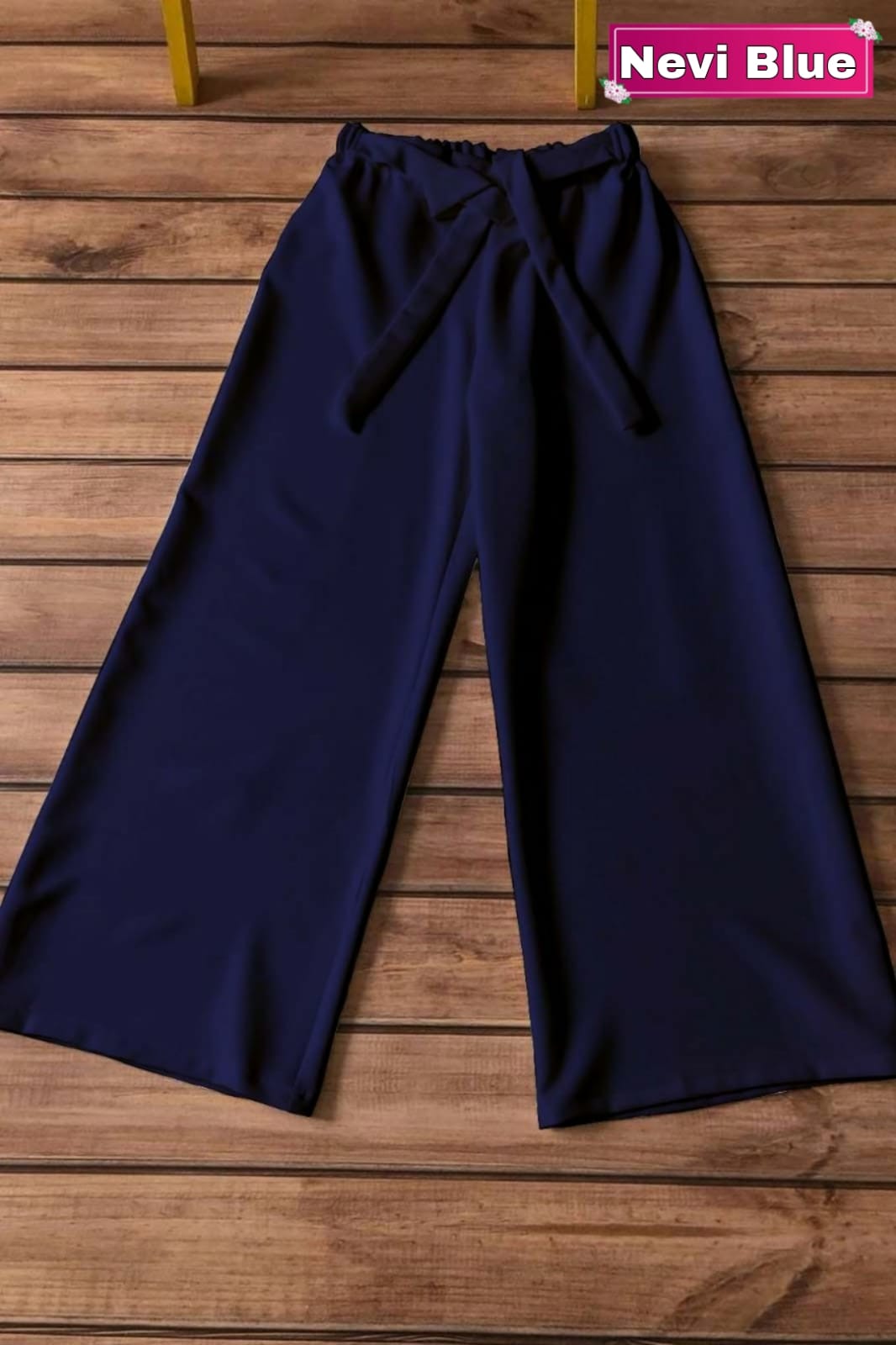 Elevate your everyday style with these Women's Navy Blue Palazzo Pants – a perfect blend of comfort and sophistication. Crafted from premium imported stretchable Lycra, these pants offer a flattering fit for all body types. The elastic waistband and self-tie belt provide added flexibility, fitting comfortably from Free Size up to XXL.